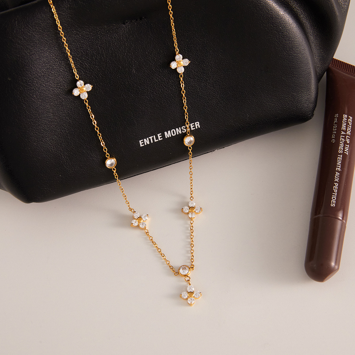 Titanium Steel Zircon Four Leaf Clover Necklace